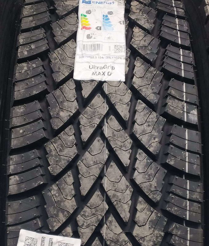 Новая шина для ведущей оси ULTRA GRIP MAX D обеспечивает на 40% лучше сцепные свойства на снегу по сравнению с предшествующей шиной (в случае шин, изношенных наполовину), а также отличается увеличенным на 15% пробегом по сравнению с предшествующей шиной(1)