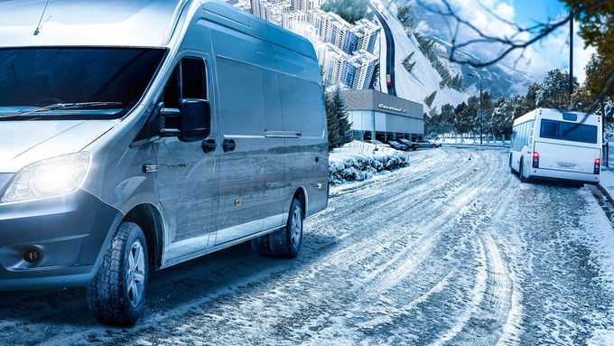 Основными акцентами в новом поколении Cordiant Business CW 2: максимальная безопасность на зимней дороге, управляемость в условиях гололеда: